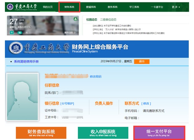 2、通过财务系统,进入统一支付平台