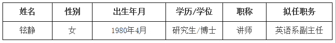 2023年3月1日,学院发布《关于公开选聘英语系副主任的通知》,在英语系中遴选英语系副主任1名。经教师自荐,并经2023年3月8日学院党政联席会研究,决定拟聘铉静老师担任英语系副主任。现予公示。