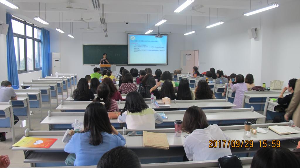 如何提高听说课程的教学有效性、开展有意义的课堂听说活动,一直以来困扰着我院大学英语教师。为提升大学英语听说课程的效果,推进大学英语教师的课堂研究意识,我院于2017年9月29日下午邀请华中科技大学博士生导师徐锦芬教授来我院进行题为“大学英语听说教学工作坊”的讲座。外语学院杨玉兰副院长及大学外语部全体教师出席聆听了讲座。