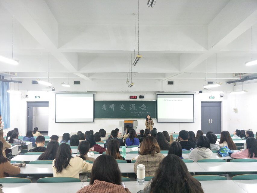 活动开始,主持人介绍了出席本次活动的嘉宾和老师。首先是由宋敏子老师为大家讲解关于国外考研方面的一些知识。她指出,国外名牌大学都会以GPA(平均绩点)、Internship(校内实习)、Language Level(语言水平)等作为考核标准,特别强调了实习单位和工作应该与自身经历有关,并且实习企业知名度越高越好。此外,她还向大家分享了她曾经在国外学习的经验,建议同学们要选择适合自己的学校和专业。在提问环节中,多名同学提到了跨专业考研,宋老师也对此作出了详细解答。中场休息时,宋老师依然耐心地为有疑问的同学答疑解惑。接下来是雷定坤老师分享国内考研经验。雷老师以往届考研的学长学姐在读的专业和方向以及他们的现状为例,为大家分析了读研与本科学习的区别。此外,他提醒同学们要正视考研,切勿盲目跟风。最后他传达了学长学姐对同学们的祝福和建议,并表示考研是一个艰辛的过程,大家要有承受孤独的准备。在提问环节中,他也耐心地回答了大家的疑惑。活动最后由主持人做总结发言,本次活动圆满结束。