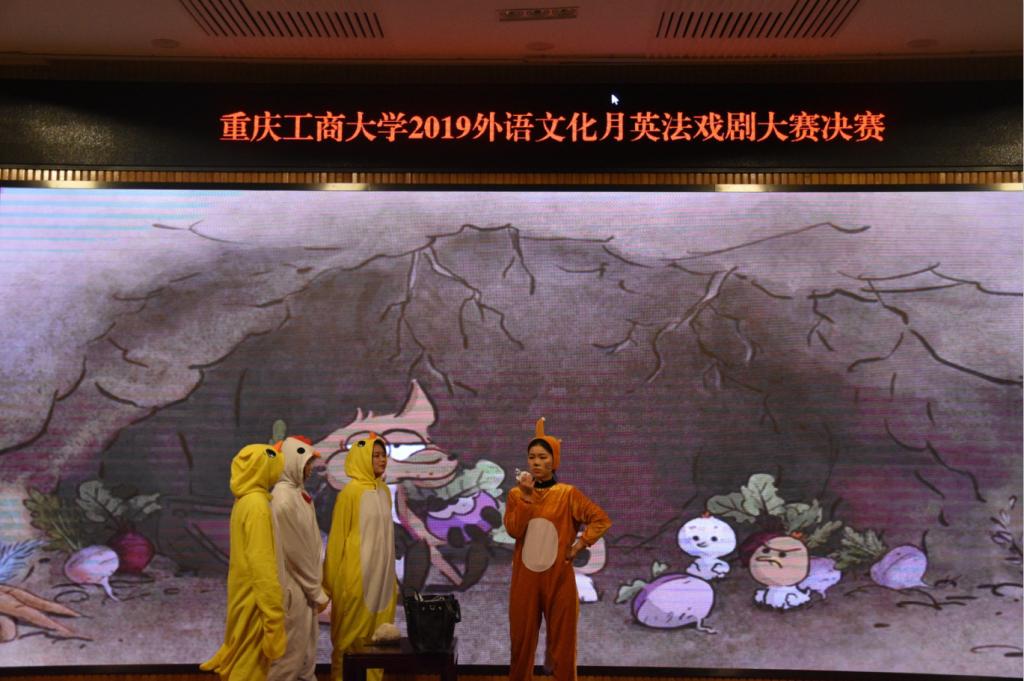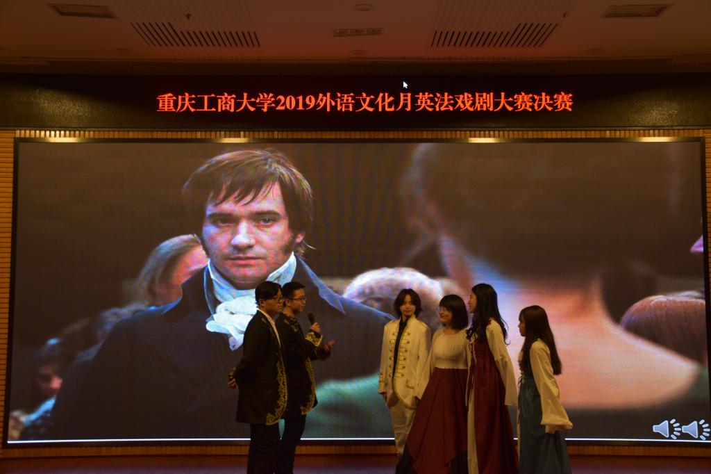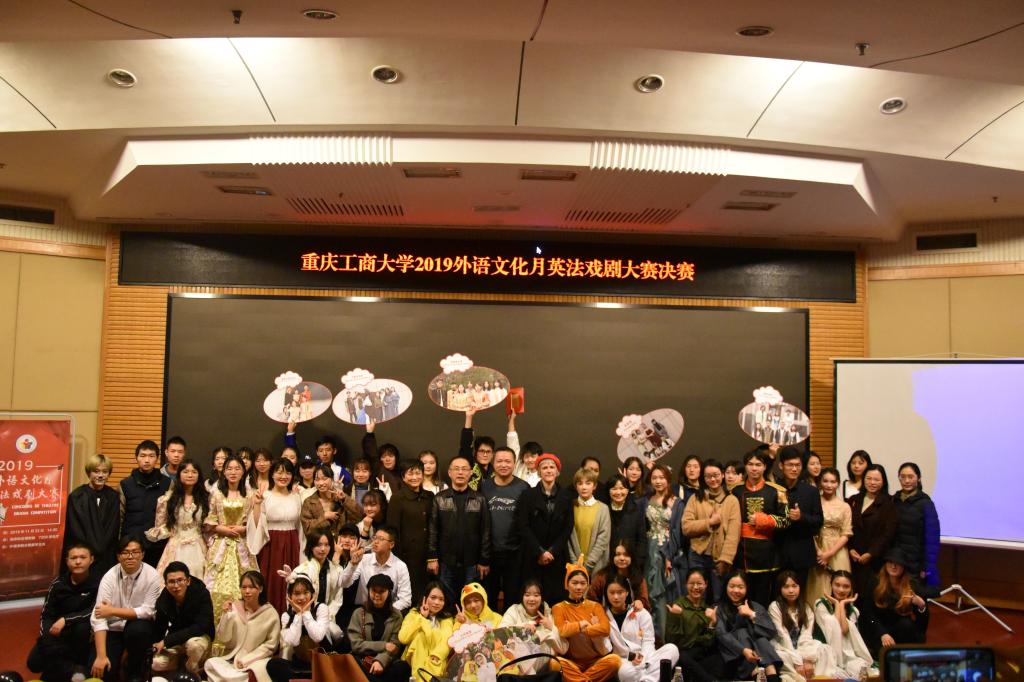 为展现外语语言魅力、弘扬优秀戏剧艺术、丰富学生校园生活,2019年11月22日,2019外语文化月-英法戏剧大赛决赛在南岸校区博智楼07200学术报告厅成功举办。法语系主任曹鹏、法语教师夏霁、法语外教Lucie、英语系教师季峥、刘晓远、史凤晓担任决赛评委。外语学院党总支副书记程亚、法语外教Miah作为嘉宾参加了本次活动。