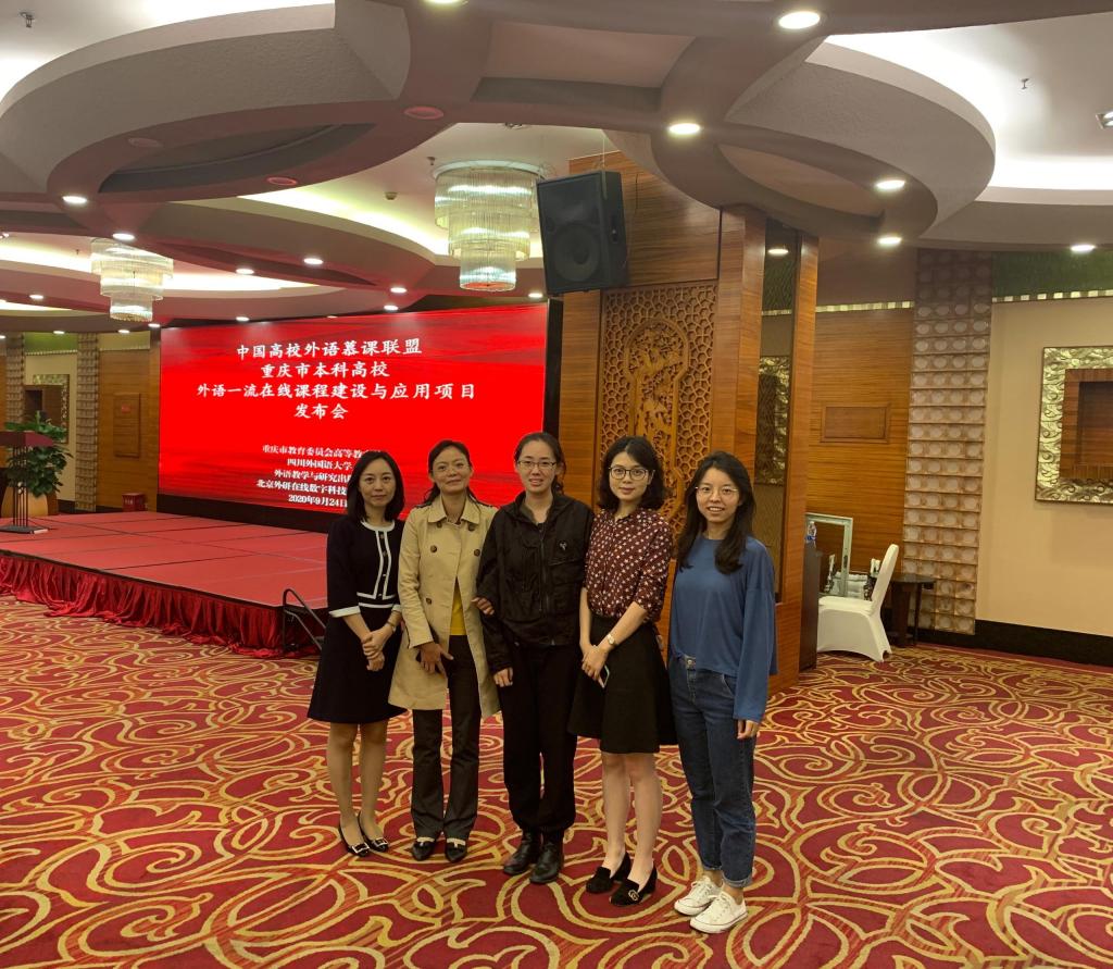 2020年9月24日下午,我校永利集团3044am副院长刘繁、英语系副主任宋敏子、陈丹杰、佘雨新、钱圆圆老师参加了由重庆市教育委员会联合外语教学与研究出版社组织召开的“重庆市高等学校外语一流在线开放课程建设与应用项目”发布会。