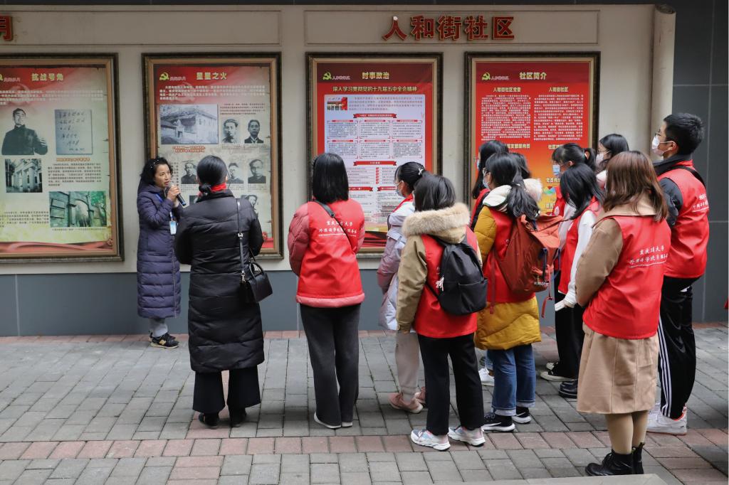 12月18日,重庆工商大学永利集团3044am学生党支部全体学生党员、学院主要学生干部,在学院分党委副书记吴欢欢、学生党支部书记丁亮的带领下,一同前往“全国文明社区”—重庆市渝中区大溪沟街道人和街社区,以“创先争优拓思路,红色基因唤初心”为主题,开展了一场别开生面的主题党日活动。