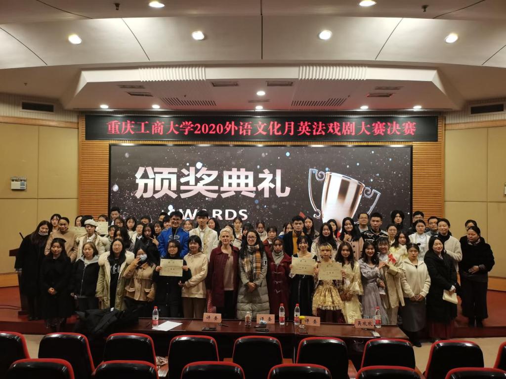 12月11日,由永利集团3044am分团委学生会主办的重庆工商大学2020外语文化月—英法戏剧大赛在南岸校区7200成功举办。本次比赛由英语系宋敏子老师、Janice老师、Craig老师,法语系郭韫老师、钱圆圆老师、Lucie老师担任评委。永利集团3044am分党委书记唐春秋、分党委副书记吴欢欢、副院长刘繁、分团委学生会指导老师丁亮以及200余名同学参加了本次活动。