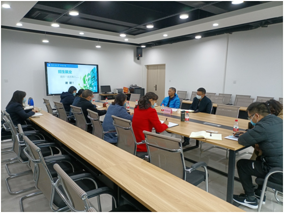 陈校长在了解学院招生就业工作的基本情况后,就学院工作提出几点建议:一是要优化人才培养模式,将外语专业与学校的经管等优势专业相结合,增强学生的就业竞争力;二是要重视文化类、历史类课程的教育教学,通过对所学语言的文化、历史的教学,提高外语类学生人文素养,提升学生发展后劲,让学生在就业市场上拥有更多选择权;三是要从多维度抓学生就业工作,从学生进校开始引导学生树立正确的择业观,让学生了解社会需求和个人能力以及学校能够提供的帮助,同时要加大对困难学生群体的就业帮扶以及做好家校联合促进学生就业。 最后,陈校长就学院的招生就业工作提出几点要求:一是要重视招生就业工作,要带着国际眼光、综合市场维度去解决招生就业问题,进一步提高教师对该项工作的重视程度;二是要抓好学生就业意愿调查,为学生提供精准就业帮助;三是要加强校友工作,利用校友资源推动就业;四是进一步发动教师,通过讲座等形式向学生介绍社会需求、职业素养,为学生择业提供参考;五是抓好实习实践工作,引导学生通过实习实践认识社会、了解社会,帮助学生顺利走上工作岗位。