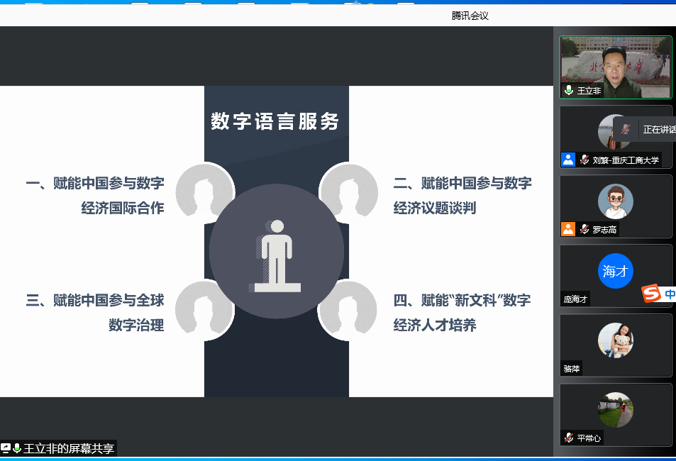 应我院邀请,北京语言大学王立非教授于2021年12月10日下午为全院教师进行了一场题为《面向国家开放战略,加快新时代商务语言服务高质量发展》的线上讲座。
