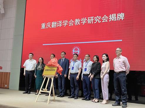 在开幕式环节,四川外国语大学校长董洪川教授致欢迎辞,他提出论坛设定的宗旨是探讨如何提升翻译人才培养质量,落实立德树人根本任务。本次论坛话题对接国家重大战略需求,紧扣高等教育改革主题,直面我国高校翻译教育最大困境,具有重要的学理和现实意义;全国MTI教指委秘书长、上海外国语大学高翻学院院长张爱玲教授通过视频形式致辞,她提出新文科背景下的翻译教育和人才培养有两个方面核心内涵值得关注:一是以现有文科专业为基础,赋予文科专业新的内容,丰富人才培养内涵;二是突破现有文科人才培养模式束缚,在更大范围内实现跨学科、跨专业的交叉融合和新突破。随后,论坛举行重庆翻译学会教学研究会揭牌仪式,我院邹莉副院长上台见证了研究会的成立。
