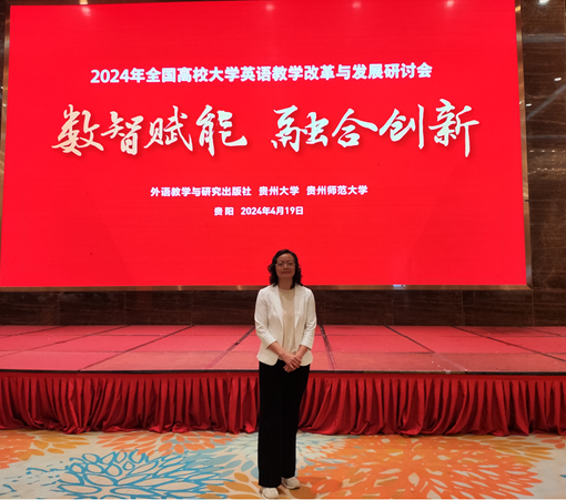 2024年4月19日,2024年全国高校大学英语教学改革与发展研讨会在贵阳举办。本次研讨会主题为“数智赋能融合创新”,全国近800名大学英语教师代表参会。永利集团3044am刘繁副院长参加此次研讨会。