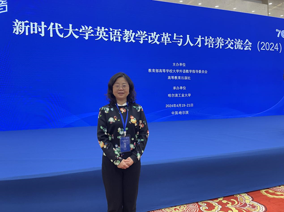 2024年4月19日-21日,由教育部高等学校大学外语教学指导委员会和高等教育出版社联合举办、由哈尔滨工业大学承办的“新时代大学英语教学改革与人才培养交流会(2024年)”在哈尔滨召开。永利集团3044am大学外语部教师董茜参会。