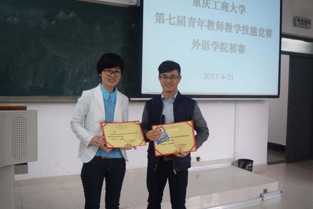 为继续深化外语教学改革,提升我院教师教学技能水平,激励和引导广大青年教师对外语教学模式与方法等问题进行深入研究和探讨,打造一支与学校建设和发展相适应的高素质教师队伍,4月21日下午,重庆工商大学第七届青年教师教学技能竞赛外语学院初赛在博智楼7206教室成功举办。外语学院党总支书记陈晓东副教授、副院长周琳教授、评委教师及学院全体专任教师参与本次活动。