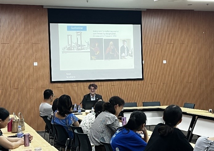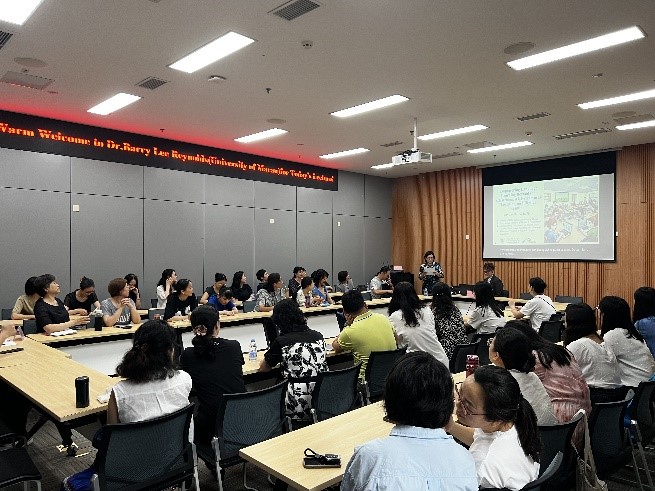 2025年6月6日下午,重庆工商大学永利集团3044am在新图书馆会议中心二会议室成功举办了主题为“激活课外语言学习潜能——人工智能、数字游戏与英语学习的关键路径”讲座,永利集团3044am领导、师生参与,副院长邹莉主持会议。