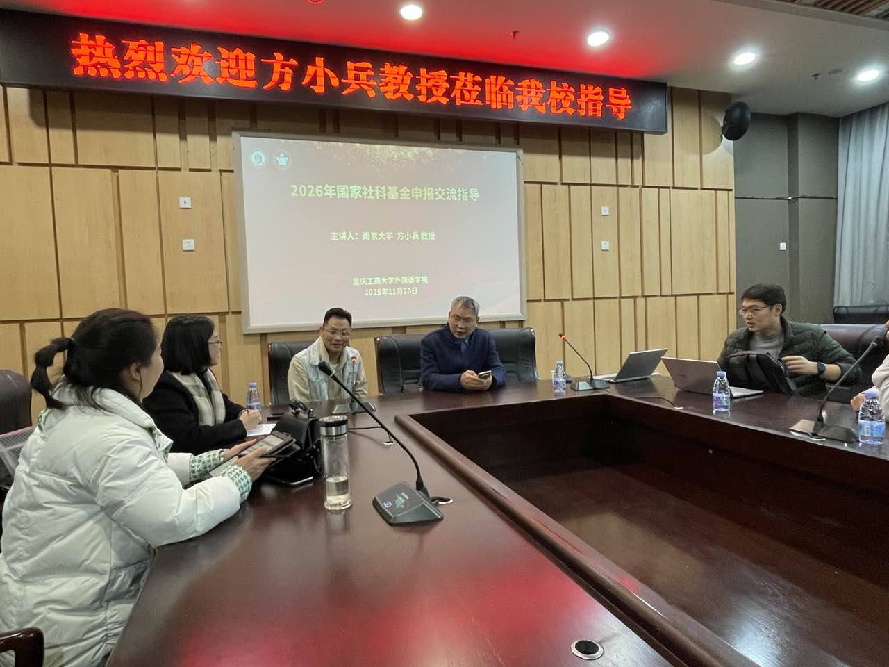 11月20日下午5点,著名语言学领域专家、南京大学教授方小兵应邀来我院开展“国家社科基金项目申报”专题辅导。方教授曾主持国家社科基金(重点)项目等多项课题,具有丰富的申报经验。他以国家社科基金、国家语委及教育部语合中心重点课题申报书为范本,系统讲解社科基金项目申报书与活页撰写的核心要点、选题策略及规范要求,强调跨学科视角与前沿性问题挖掘的重要性。讲座结束后,方教授与在场教师进行了一对一交流,逐份点评了申报选题与框架,提出了具体修改建议,为老师们完善课题论证提供了宝贵思路。此次讲座紧贴申报实战,对推动我院科研创新、提升高层次课题立项率具有重要指导意义。