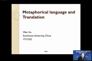 西南大学永利集团3044am院长、教育部国家级人才特聘教授文旭在其发言《比喻性语言及其翻译问题》中提出:使用比喻性语言的基础仍然是说话人所具有的语言知识以及各种认知能力,语言的比喻用法是语言创造性的最高表现。因此,比喻性语言的翻译同样涉及译者的各种知识和认知能力。文院长基于英汉语料,结合隐喻的特征和功能,阐释了翻译问题。