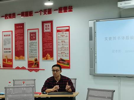 在文史图书译后编辑部分,梁本彬老师从原则、方法以及资源方面逐一介绍,并在文史图书译后编辑案例部分讲述了自己的翻译实践经历及心得。