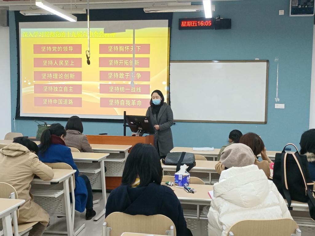 教职工集体学习。11月19日,学院召开教职工政治理论学习大会学习十九届六中全会精神。学习由廖文玉老师领学,廖文玉老师带领老师们集体学习了十九届六中全会会议公报,黄冠、张颖等老师根据学习内容谈了体会。