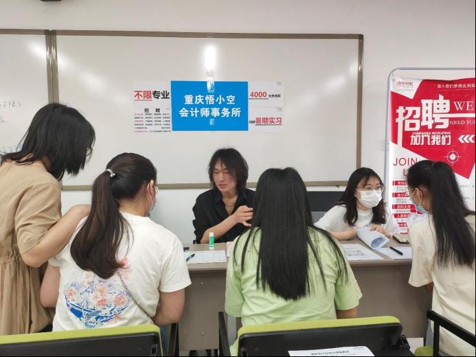 为更好拓宽毕业生就业渠道,做好毕业生就业服务工作,5月7日上午,永利集团3044am在涵智楼1108成功举办“访企拓岗促就业”专项行动--2022年毕业生春季双选会。校友企业重庆新途进出口贸易有限公司、校友企业重庆小能进出口有限公司、重庆九龙云端科技有限公司、卡洛哈(中国)科技有限公司、坤章文化传媒(重庆)有限公司、重庆美栖姆教育科技有限公司、重庆新东方教育培训学校有限公司、重庆浩翔外航人力资源管理有限公司等10家公司到场参加此次双选会。