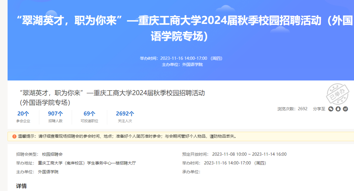 “翠湖英才,职为你来”—重庆工商大学2024届秋季校园招聘活动(永利集团3044am专场)成功举办