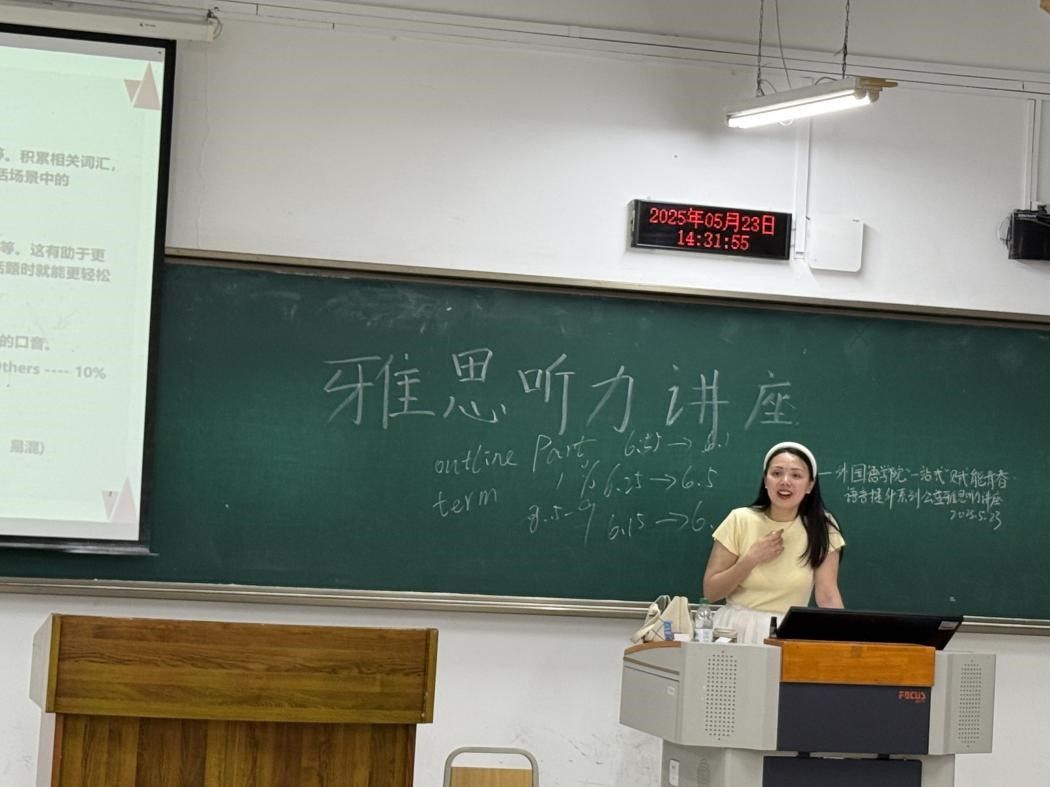 2025年5月23日,由大学外语课程思政示范分中心与永利集团3044am党员服务站联合主办的“一站式”赋能青春.语言提升雅思听力公益讲座在南岸校区博智楼07221教室顺利举行。讲座特邀我校经验丰富的张洵老师主讲。
