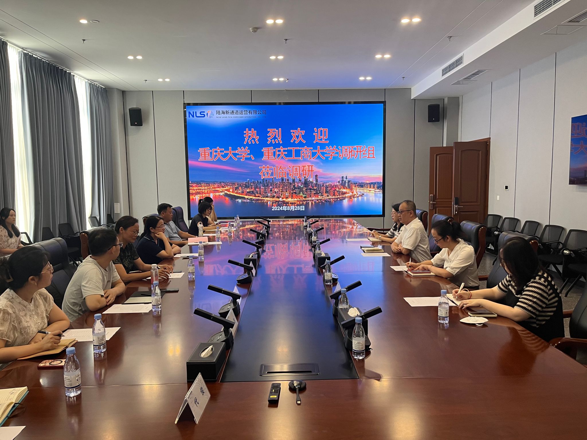 在刘梦骥总经理助理的陪同下,调研团队先后参观了陆海新通道运营有限公司的展示厅、运营调度中心、重庆国际物流枢纽园区、陆海新通道重庆无水港,对西部陆海新通道的建设历程、公司的运营模式、业务范围、发展成就及未来规划有了直观而深入的了解。