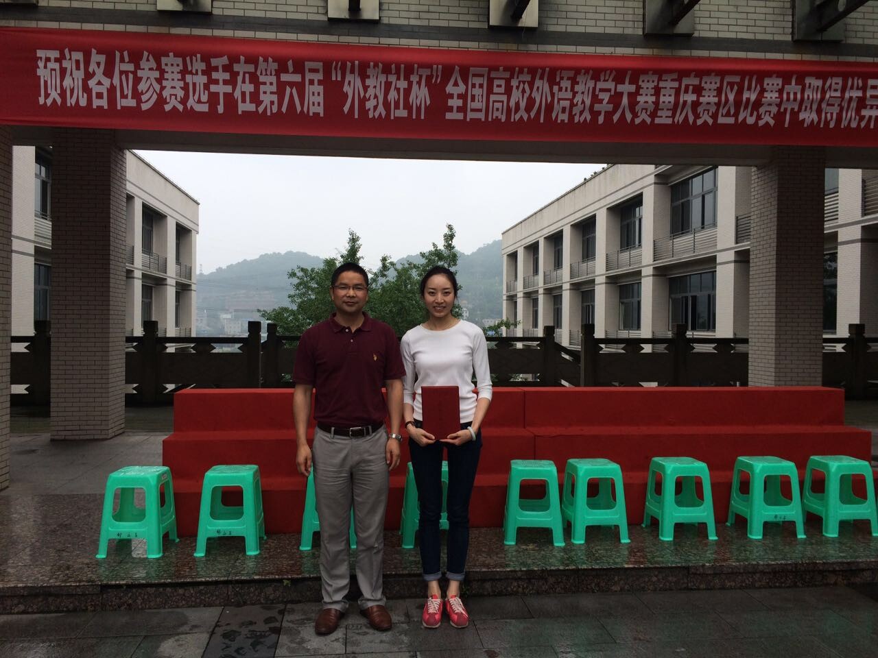 2015年6月6—7日,由教育部高等学校外语专业教学指导委员会、高等学校大学外语教学指导委员会、重庆市教委高教处、重庆市高校外语教学指导委员会和上海外语教育出版社主办、重庆第二师范学院承办的第六届“外教社杯”全国高校外语教学大赛重庆赛区比赛在重庆第二师范学院南山校区举行。外语学院青年教师赵冬旭和程艾思代表学校参加了比赛。外语院长戴运财教授、副院长周琳教授、英语系副主任张轶老师等陪同并观摩了大赛。