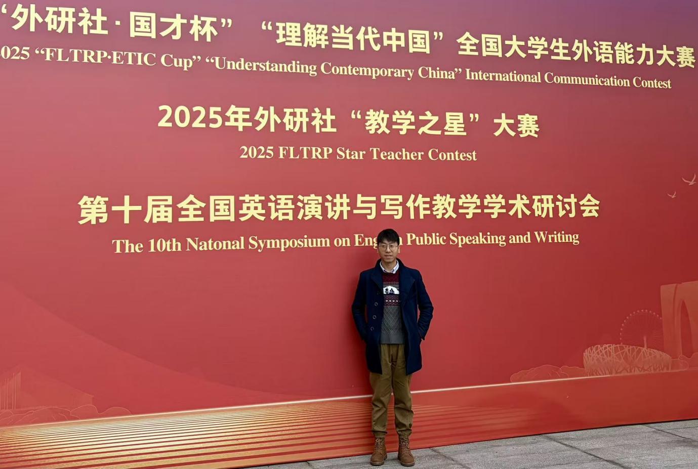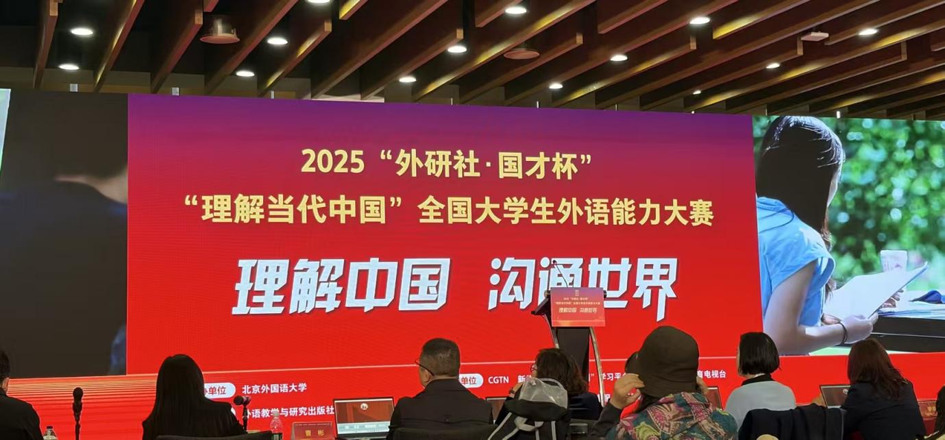 2025年12月6日,“外研社·国才杯”“理解当代中国”全国大学生外语能力大赛英语组国际传播综合能力赛项国赛第三阶段在北京举办。我院教师刘勇亲临现场观摩,为学院赛事组织与选手培养积累宝贵经验。