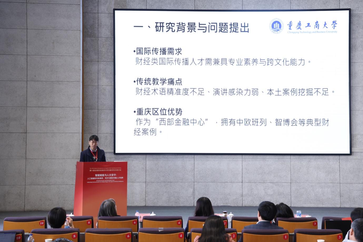 来自全国各地的高校外语教师、专家学者齐聚一堂,共同探讨智能技术赋能外语教学的新路径。我院教师刘勇参会,并在分组发言环节作了题为“智能赋能与财经叙事融合:英语演讲课程中AI驱动的重庆财经故事国际传播实践”的专题报告。报告中,刘勇结合自身教学实践,深入阐述了如何利用人工智能技术优化英语演讲课程设计,通过AI驱动的个性化教学方案,生动讲述重庆财经故事,有效提升了学生的国际传播能力。