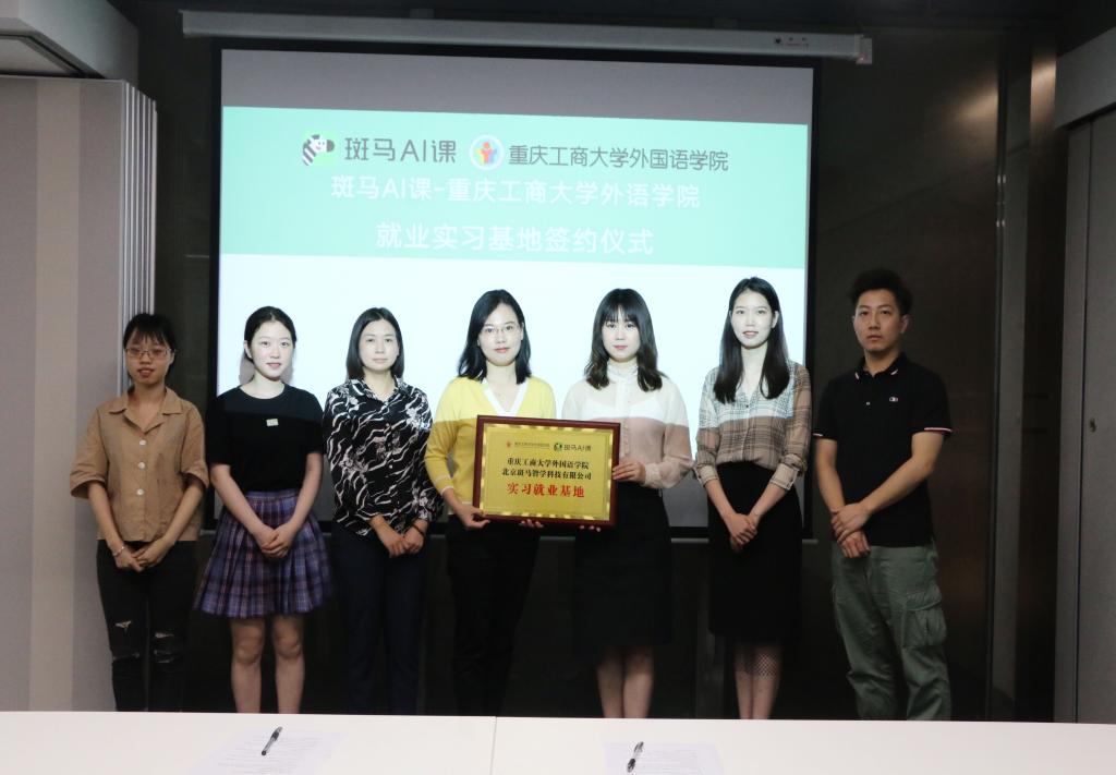 重庆工商大学永利集团3044am党总支副书记程亚、英语系主任邹莉、斑马AI教育重庆选聘培训部副主任刘宏月,重庆选聘培训部校招HRBP宋隆凡等共同出席了签约与就业实习基地授牌仪式。