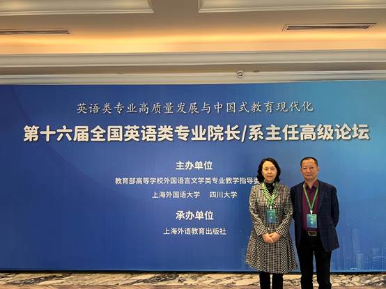 4月6-7日,由教育部高等学校外国语言文学类专业教学指导委员会、上海外国语大学和四川大学主办,上海外语教育出版社承办的第十六届全国英语类专业院长/系主任高级论坛在成都举行,论坛主题为“英语类专业高质量发展与中国式教育现代化”。我院周琳院长和英语系主任李洪波参加会议。