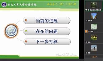 随后,英语系系主任李洪波老师介绍了本学期英语系“三进”推进的状况,介绍了英语系当前“三进”工作的进展、存在的问题和下一步的打算。提出尤其需要解决“三进”背景下,如何结合实际,调整英语系人才培养方案时遇到的一些困难和可能采取的办法。法语系主任曹鹏老师也介绍了法语专业专门开设的“三进”课程教学情况,及其与其它课程如何实现联动,互促互进的良好效果。
