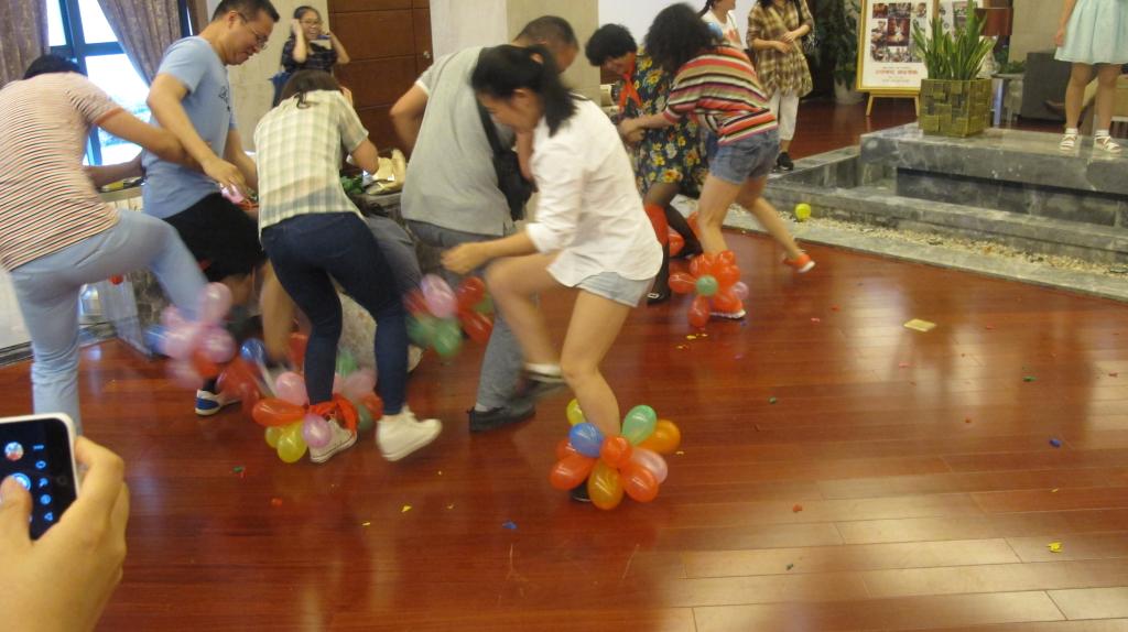 活动分两个小组进行角逐,在无敌风火轮、驿站传书、踩气球、盲人方正和筷子接力等游戏比赛中,大家热情高涨,在欢乐与和谐的氛围中分享了游戏的轻松愉悦和团队协作给大家带来成功的喜悦。此次联谊活动不仅使教职工们放松了心情,愉悦了精神,还增进了我院和废油资源研究中心教师之间的友谊。