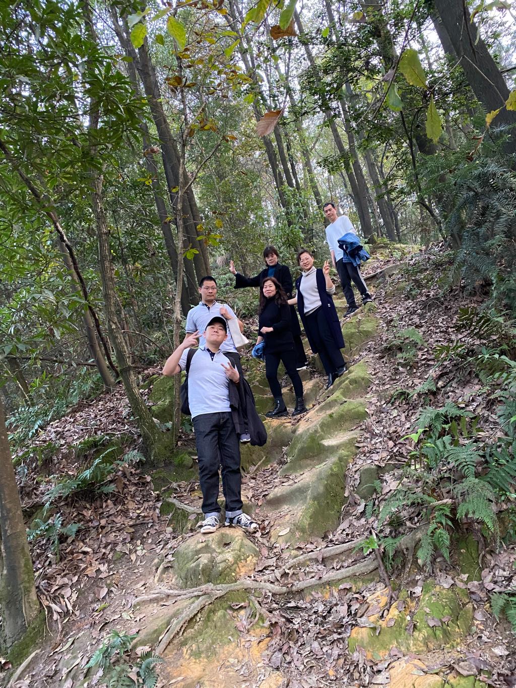 本次活动的路线为"涵智楼七层平台-国际商学院-翠林宾馆-南山书院-龙脊山腰-龙脊山山顶-返回涵智楼七层平台",并建议老师们在保证身体健康的前提下,量力而行。虽然已进入冬季,但阳光明媚、空气清爽。整个活动中,大家的脸上始终洋溢着冬日暖阳般的笑容,工作中的热情与韧劲在爬山过程中再次充分展现。