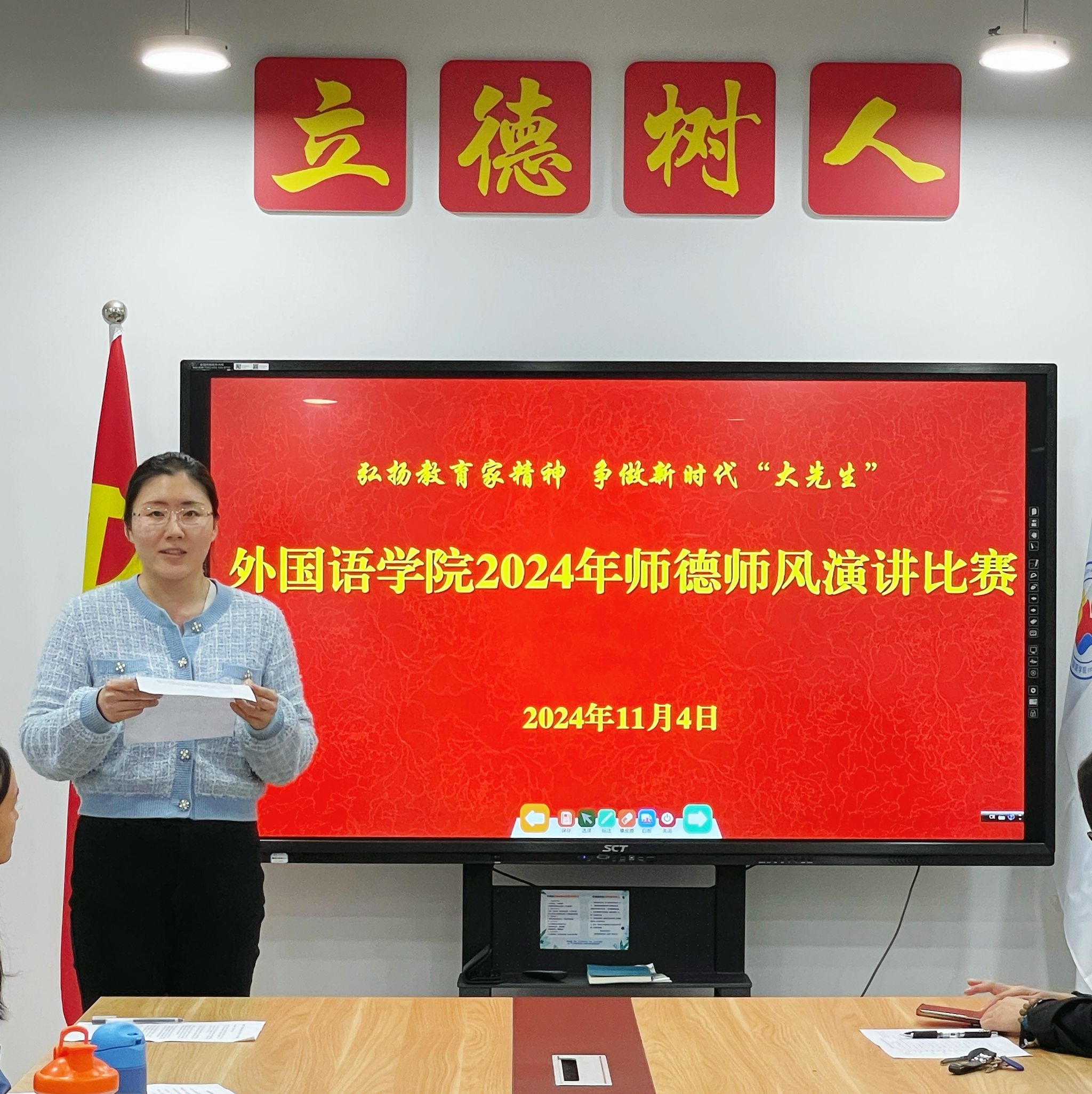 为弘扬教育家精神,引导教师坚定理想信念、争做新时代“大先生”,全面提升我院教师队伍整体素质,永利集团3044am工会于11月4日中午, 在涵智楼1216会议室成功举办2024年师德师风演讲比赛。学院全体院领导出席并担任此次比赛的评委。