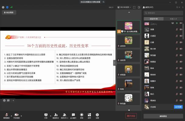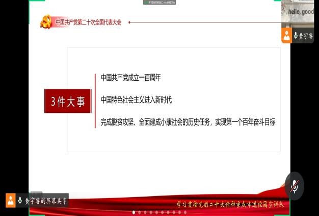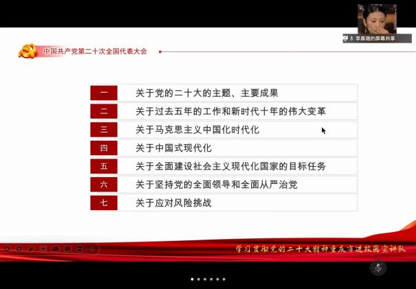 “宣讲团”成员从二十大的主题、主要成果,过去五年的工作和新时代十年的伟大变革,马克思主义中国化时代化,中国式现代化等方面向同学们详细介绍了党的二十大精神。