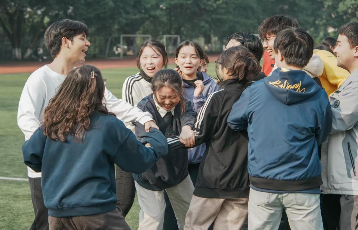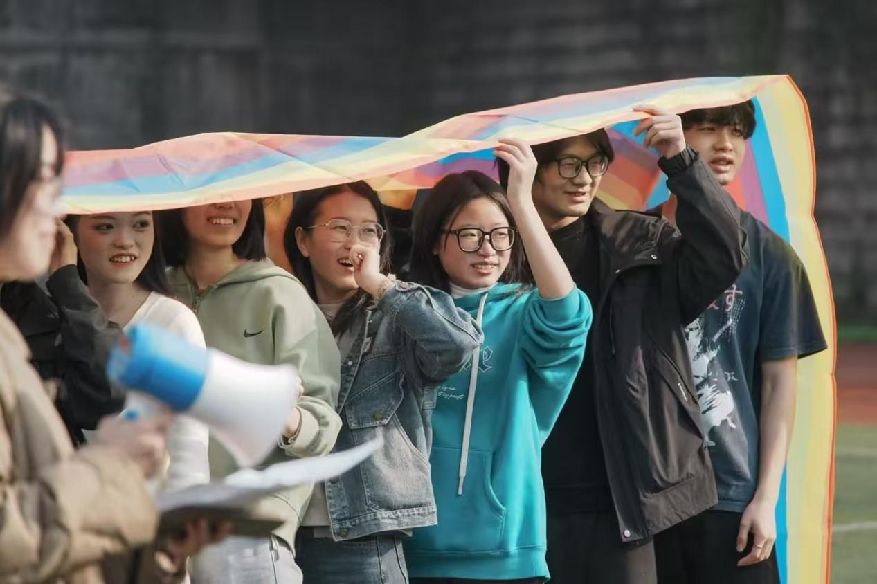 本次运动会由丘里曼、郭涵和林子一三位同学联袂主持。活动伊始,向前老师致辞,既细致叮嘱了活动期间的安全注意事项,也对本次趣味运动会的顺利举办表达了殷切期待与美好祝愿。随后,参与同学迅速分为六组,在主持人丘里曼的热情引导下开展“爱的抱抱”热身活动,欢声笑语漫溢操场,瞬间点燃了全场的热烈氛围。