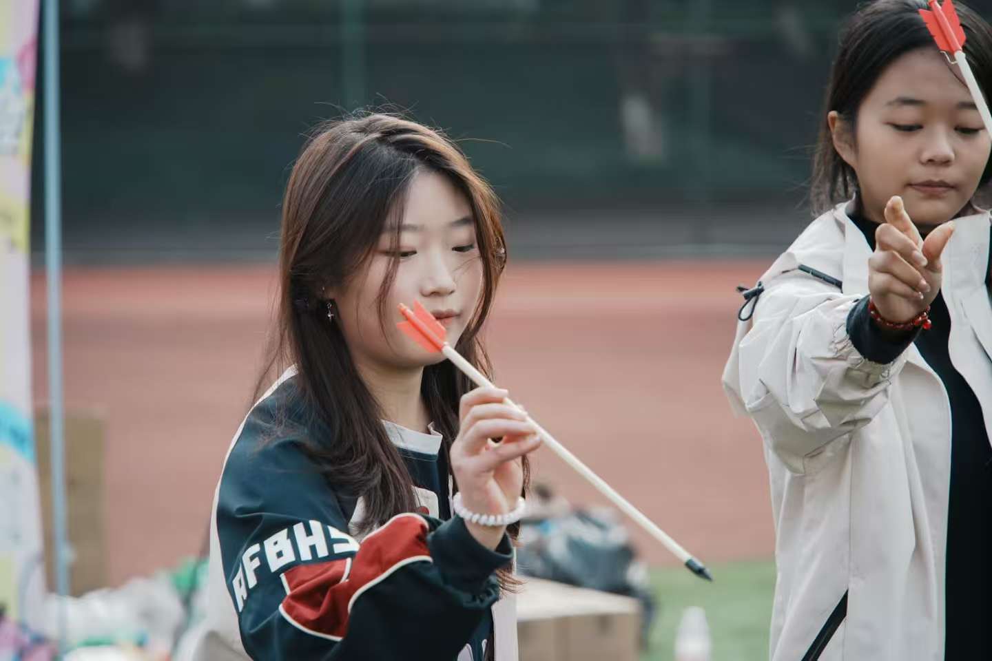 最后的“投壶”项目则切换至动静相宜的节奏,选手们需在指定线外凝神聚力,将箭矢精准投入壶中,这既考验专注力、手眼协调能力,也注重动作的稳定性。比赛中,选手们屏气凝神、精准投掷,每一次成功入壶都引来现场阵阵喝彩。该项目不仅是个人技巧的比拼,更让同学们在轻松互动中增进了彼此情谊,沉浸式感受中华传统礼仪文化的独特魅力,为整场运动会增添了浓厚的文化底蕴。