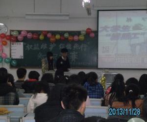 2013年11月28号晚19:00-19:50,外语学院“维护权益,你我先行”活动在博智楼07404成功举办。分团委学生会权益部全体干部干事以及2013级各班同学参加了此次活动。活动由孙杰和蒋欣主持。
