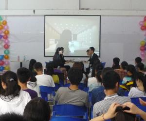 首先,主持人张新宇、杨雨双依次介绍了嘉宾、评委以及评分规则。随后,王恩科副院长给大家带来一段精彩致辞,预祝本次大赛顺利举行。比赛正式开始,首先出场的是12级法语二班。作为法语专业的学生,出色的演技赢得了不少赞叹,而流利的英语口语更是惊艳全场;而后,12级英语三班为大家送上《我和宝马有个约会》,投入的表演,幽默的台词不时令观众皆捧腹大笑;之后10级翻译班的《A Business Negotiation》则更是将现场气氛推向高潮,选手们娴熟纯正的口语,精湛的演技,地道的对白无一不将商务谈判的现场展现得淋漓尽致,牵动着观众的心弦,赢得了激烈的掌声。