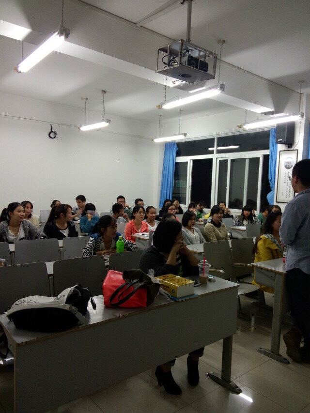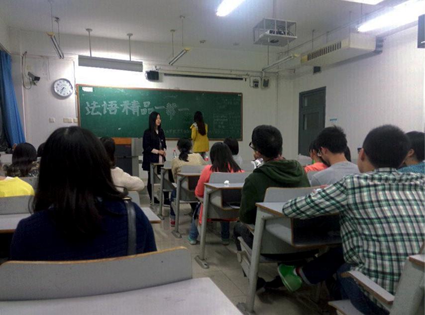 主持人简短的开场白拉开了活动的帷幕,本次活动共分为三个部分,首先由2013级法语班樊兴同学讲解法语学习过程中所存在的共性问题及疑虑,接下来2012级法语一班杨晓璐同学讲解了法语考研的相关问题,最后2012级法语一班田珊同学和大家分享了法语专业毕业生就业的主要途径。面对同学们提出的各种初学法语所面临的问题,樊兴同学结合自己的经验耐心地为同学们进行了讲解,并推荐了一些实用的专业资料。就考研问题,杨晓璐同学首先把自己所收集的本专业考研形势资料和大家做了分享,然后又把自己的经验传授给了同学们。对于那些立志出国留学的同学,田珊学姐细致地讲解了相关注意事项。去非洲就业,去法企工作,还有各种各样的适合法语专业学生的好的工作岗位。很多人都积极的举手让学姐多介绍一些去非洲和法企工作所需要的条件,并留下联系方式以便日后的进一步交流。
