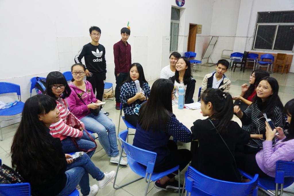 2015年10月29日18时30分,外语学院第四期英语角在重庆工商大学外语活动中心举行。本次英语角的主题为“Should the relationship between teachers and students like one between friends or like one between a traditional master and an apprentice?”。来自法语一班的朱俊怡和英语班的唐丽同学主持此次活动。外教Justin作为特别来宾出席,各学院英语爱好者积极参与本期英语角。活动由外语学院分团委学生会通讯宣传部主办。