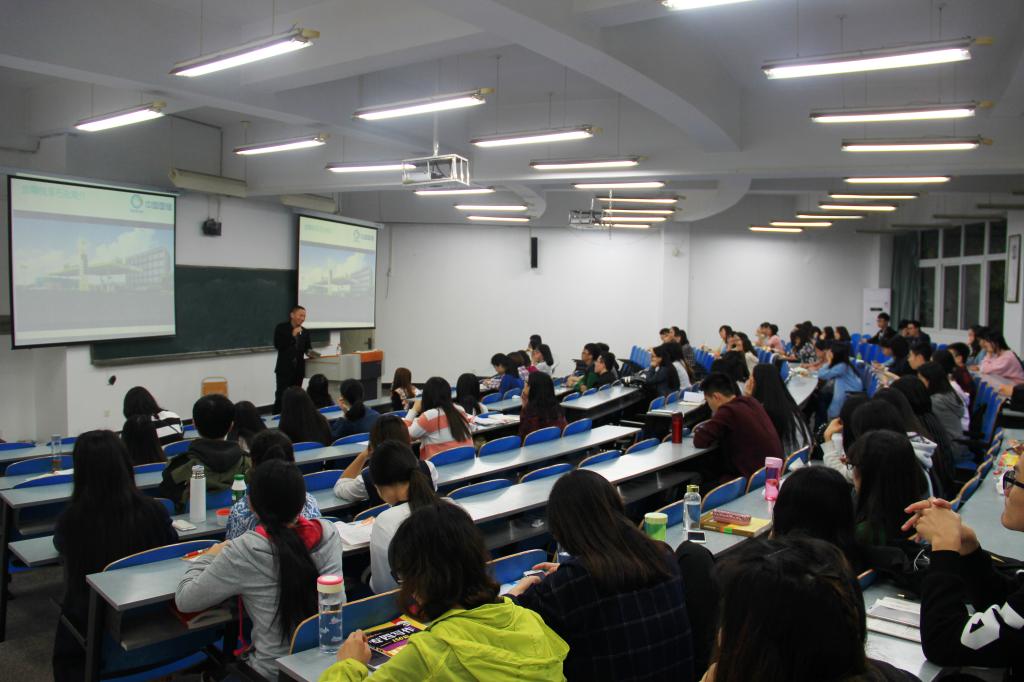 2016年4月21日20:40,在重庆工商大学慧智楼阶梯教室326,伴随着热烈的掌声,由中国国储能源化工集团烟台股份有限公司徐桂寿总经理主讲的“商务精英进课堂”讲座取得圆满成功。这次讲座由周琳副院长主持,全体13、14级的同学参加了这次讲座。