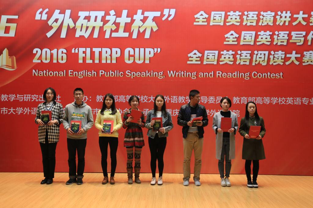 经过激烈的角逐,西南大学余松琦获得演讲比赛第一名,西南政法大学沙高洁获得写作比赛第一名,西南政法大学鲁鸣获得阅读比赛第一名,他们将代表重庆赛区参加全国总决赛,我校范文娇同学获得重庆市第26届大学生英语演讲比赛英语专业组一等奖,谢瞻、胡星同学分别获得大学英语组和研究生组三等奖,封鹏程同学获得2016年“外研社杯”全国英语阅读大赛重庆赛区三等奖。