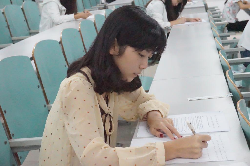 自报名之日起,本次大赛就受到了同学们的关注与重视,来自全校各学院的英语爱好者们纷纷报名参与并开始备赛。与此同时,外语学院分团委学生会的工作人员也没有半点懈怠,进行了充分的工作准备。考试当天,参赛选手们一早就来到教室静心准备,等候考试。他们走进考场时胸有成竹,意气风发的模样,有一种不抱奖杯誓不归的豪迈。工作人员宣读比赛规则后,本次大赛正式开始。选手们或皱眉,大概是遇到了一个较为棘手的题目,但数十秒后眉头慢慢舒展,露出浅浅的微笑,仿佛有一种拨开迷雾见月明的明朗透彻感;又或挠头,大概是写作大赛的作文立意有点难以切入,一时不知该如何陈述。两小时后,比赛接近尾声,陆续有同学举手示意工作人员添加答题纸,并在答题纸上流畅地写下满意答案。