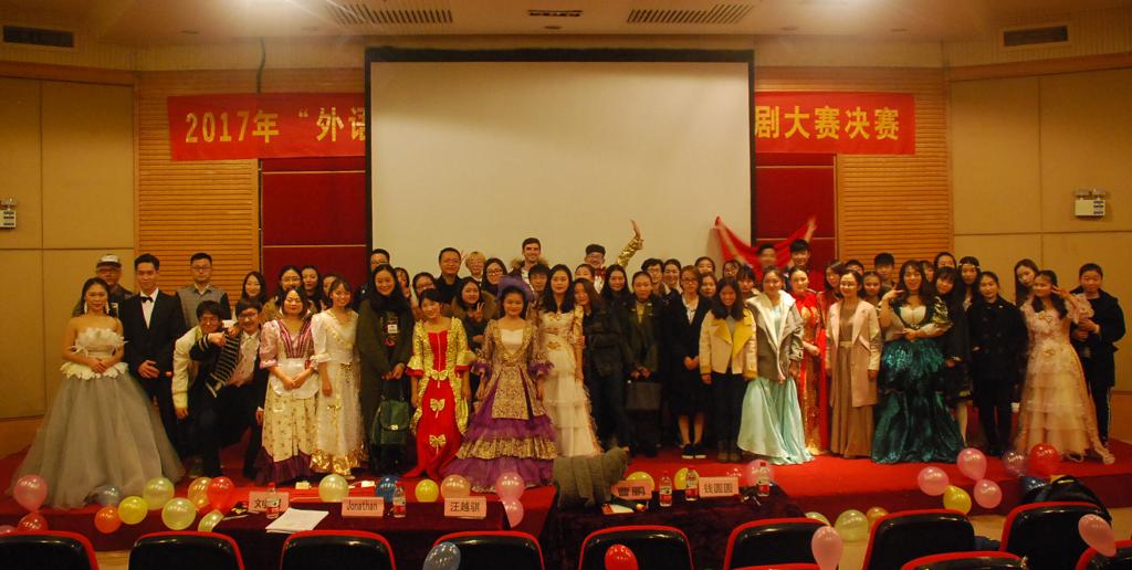 2017年11月30日下午18点30分,外语学院2017-2018学年法语歌曲暨戏剧大赛决赛在南岸校区博智楼7200报告厅成功举行。本次大赛由外语学院分团委学生会主办,法语系主任曹鹏老师、外语学院分团委书记黄志婕老师、法语系教师钱圆圆、汪越琪老师、法语外教Jonathan及紫手工话剧社第22任社长刘留担任评委,大赛由吴昊、戴裕媛同学主持。