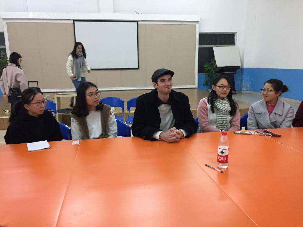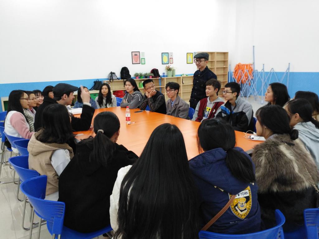 伴着主持人流利的英语开场白,此次活动拉开帷幕。随后进入大家期待的free talk环节,各个同学用英语分享了自己的购物经历。Jonathan也在主持人的邀请下上台讲述了他的购物体验,在分享中他提到了中法两国的购物方式大不不同,例如,在法国没有淘宝等网上购物的网站,法国人购物都是到实体店,而在中国只需要动动手指头就可以购物,十分便捷。同时,Jonathan也分享了一些他在中国购物时发生的趣事,让现场气氛轻松而热闹。为拉近他与同学们彼此间的距离,Jonathan提出了由几个小组到围坐一起共同讨论的建议,这让大家之间的交流更加轻松便利,使得同学们更勇敢大胆地用英语表达自己的想法,从而起到提高英语听说能力的作用。在同学们的一问一答中,本期英语角也进入尾声。