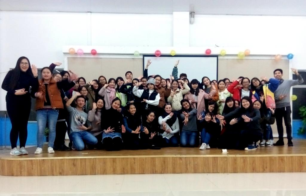 本期英语角以“Dream Career”为主题。首先,主持人简单介绍到场嘉宾并宣布活动开始。紧接着,外教Brittany登台讲述了自己的“Dream Career”——To be a singer.这让同学们也不禁想到了自己的理想职业,甚至有几位同学踊跃上台分享了自己的想法,气氛也随之变得轻松活跃。“Free Talk”环节中同学们更是讨论地热火朝天,同学们纷纷用英语表达自己的想法,外教和留学生们也积极地和同学们交换自己的看法,这使得同学们能够在交流中锻炼自己的英语表达能力。接下来是大家翘首以盼的“Learning Thai Dance”环节,先是泰国留学生们用地道的泰国舞蹈为在场人员带来了一场视觉盛宴,随后同学们随机分组学习舞蹈。经过留学生们细心认真地指导,同学们大体掌握了舞蹈的基本动作要领。在欢快的音乐背景中,全场翩翩起舞,这一场景也被定格在了相机中。最后,在同学们的意犹未尽中,本次英语角圆满结束。