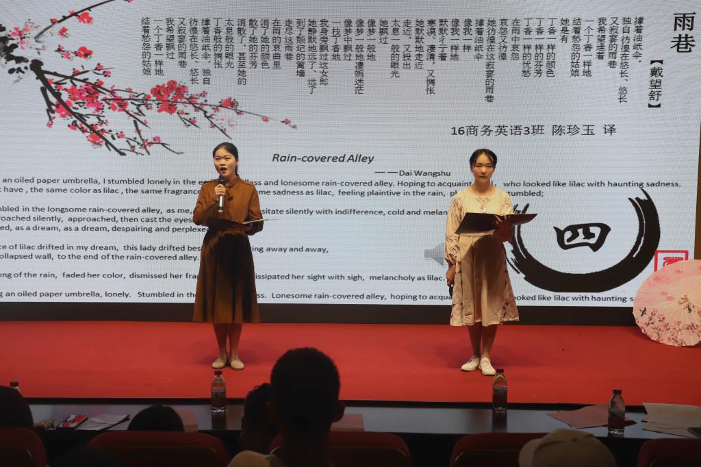 “我是译者”中国诗词英文译读大会以“赏中华诗词、承传统文化、学英文精髓”为基本宗旨,力求通过对诗词翻译的比拼及赏析,带动全校青年学生重温中华古诗词,运用英语翻译技巧,分享诗词之美,感受诗词之趣,从古人的智慧和情怀中汲取营养,涵养心灵,自举办以来,吸引了众多热爱中国诗词文化的学生参加,华龙网也以《重庆工商大学“我是译者”弘扬传统文化 英译“中国诗词”》为题全程报道了活动。