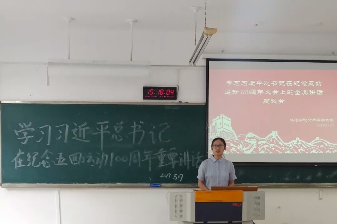 本次会议既使同学们对“五四精神”有了更深刻的认识,也让大家意识到,当代青年人一定要坚定自己的理想信念,让梦想在奋斗中升华,让青春在创新中闪光。希望大家在余下的时间里,牢记青年人的责任与使命,砥砺奋进,开拓创新。