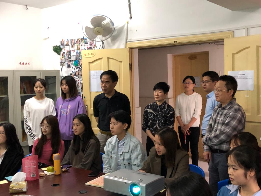 十一时左右,学校党委李志雄书记和宋豫副书记一行视察主校南区宿舍,兴致勃勃参与到活动中。李书记如数家珍般给同学们介绍了诗词写作的背景,分享了老一辈革命家的历史故事,回顾了新中国成立的艰辛历程,勉励在座学子积极响应习总书记号召,奋发图强、不忘初心,接过时代接力棒,砥砺前行。宋书记则细心叮嘱同学们严格遵守疫情防控相关规定,节假日出行注意安全。
