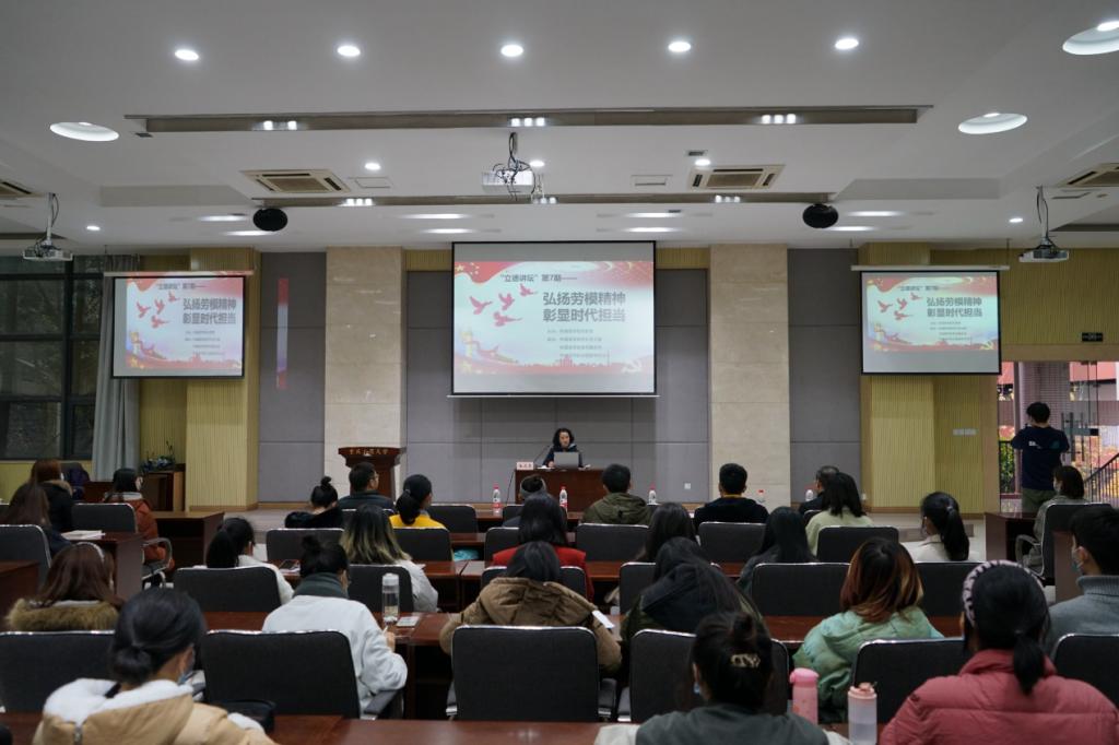 2020年12月4日,永利集团3044am“立德讲坛”第七期—“弘扬劳模精神,彰显时代担当”在重庆工商大学南岸校区田家炳书院408成功举行。此次活动特别邀请到重庆市渝中区大溪沟街道人和街社区党委书记兼居民委员会主任、2020年“全国劳动模范”陆远秀作为宣讲嘉宾,学校党委组织部副部长于频,党委学工部副部长尹建平,永利集团3044am分党委书记唐春秋,永利集团3044am分党委副书记吴欢欢,以及永利集团3044am全体学生党员、入党积极分子、学生干部共计100余人参加了本次宣讲会。本次活动由永利集团3044am学生党支部书记丁亮主持。