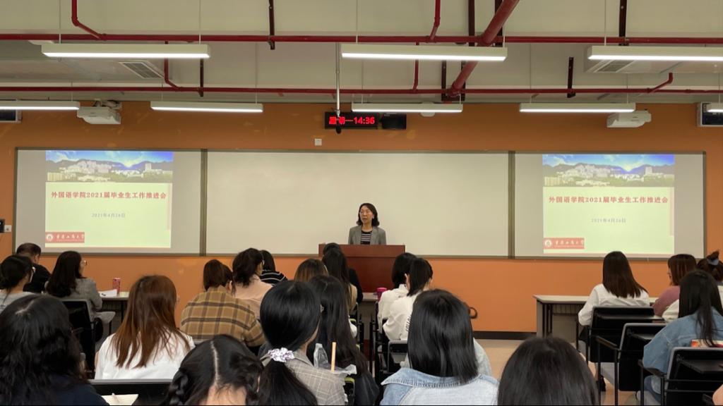 2021年4月26日14:30,重庆工商大学永利集团3044am召开了2021届毕业生就业工作动员大会,此次参会人员:永利集团3044am院长周琳、副书记吴欢欢、英语系系主任邹莉、法语系系主任曹鹏、辅导员黄志婕、丁亮、杨香艳及永利集团3044am2021届全体毕业生。